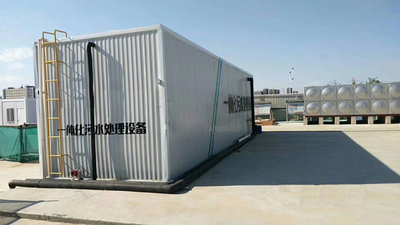 污水經(jīng)格柵除去飄浮和大顆粒懸浮雜質(zhì)后進(jìn)入污水調(diào)節(jié)池,調(diào)節(jié)池中污水由提升泵提升進(jìn)入一體化污水處理設(shè)備,污水在設(shè)備中經(jīng)過(guò)水解酸化、生物接觸氧化、沉淀、消毒等處理過(guò)程,出水達(dá)標(biāo)回用或達(dá)標(biāo)排放。
