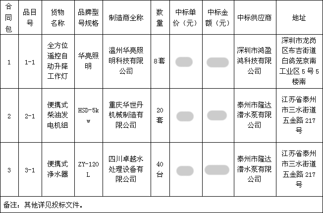 我公司在投標(biāo)編碼為:FJTH-31120160927由福建省天海招標(biāo)有限公司為招標(biāo)代理機(jī)構(gòu)的招標(biāo)工作中,經(jīng)過激烈競標(biāo),我公司以絕對優(yōu)勢在由福建省人民政府防汛抗旱指揮部辦公室采購的《關(guān)于全方位遙控自動升降工作燈及便攜式柴油發(fā)電機(jī)組等防汛物資采購項(xiàng)目》中中標(biāo),中標(biāo)內(nèi)容為40臺便攜式水機(jī)。奮力拼搏創(chuàng)佳績,再奪本月開門紅。