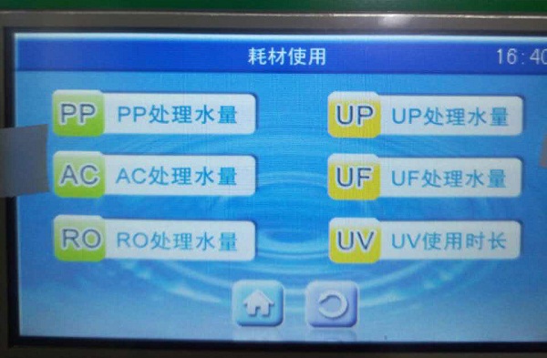 耗材內(nèi)循環(huán)功能,使耗材的使用壽命提高1倍,從人機互動信息互通上,無論是耗材和配件,都能記錄各個部件的運行時間,方便運行過程中查看耗材的使用壽命等問題,并可以通過USB接口,將各項數(shù)據(jù)導出方便管理。另外整機采用符合NSF國際認證體系的關鍵,保障超純水機的水質(zhì)的穩(wěn)定性。