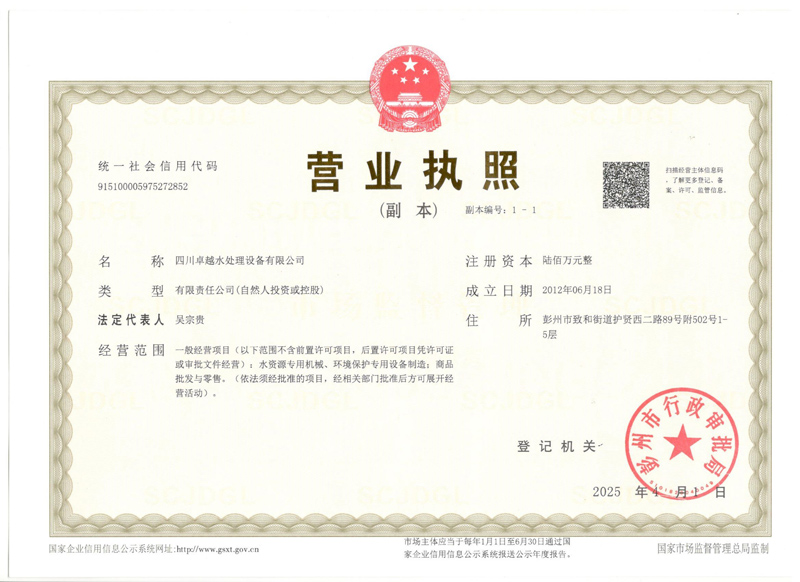 四川卓越水處理設(shè)備有限公司營業(yè)執(zhí)照