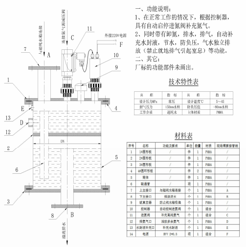 四、超純水氮封水封裝置技術(shù)參數(shù)