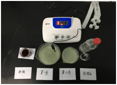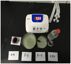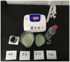 實驗表明該實驗室廢水中COD值高達1500mg/L左右、總溶解性固體含量也高達10000us/cm以上,已經(jīng)超出儀表的檢測范圍值、濁度SS值高達980mg/L。如圖所示通過以下四個小試步驟。