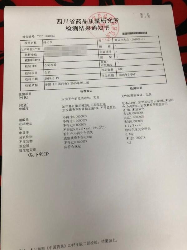 第三方水質(zhì)檢測資料如下: